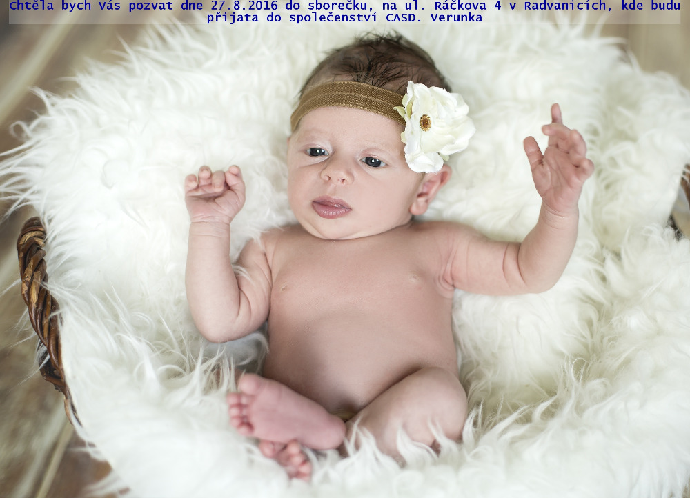 Pozvánka na vítání Verunky Jonešové (27. srpna 2016)